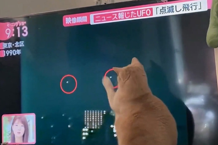 【趣聞】小貓對電視上的UFO使出高速貓拳太有趣!今次主角是9歲的英國短毛貓「まる」,有天牠在看電視上的晨間新聞節目,這天內容是關於不明飛行物體 UFO 的片段,主人以為牠在平靜地觀看,但當螢幕上出現因鏡頭搖晃而看似在動的UFO光點,牠立刻使出高速連環貓拳,打算擊落UFO!