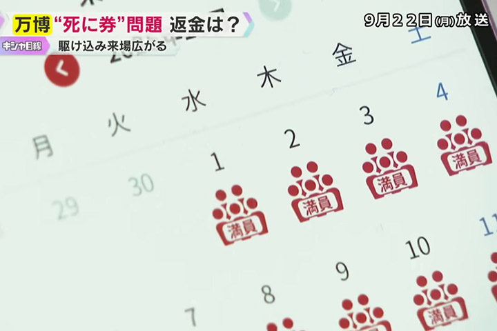 【社會】大阪關西萬博「死票」問題嚴重113萬人有票但無法入場!現在距離大阪關西萬博閉幕只剩三星期,隨著在結束前趕去的人越來越多,一個嚴重問題也隨之而來,就是買了但用不了的「死票」。記者嘗試進行預約,發現大部分日子都已經是紅色滿額狀態,而剩下黃色的按進去也表示超出人數限制無法預約。
