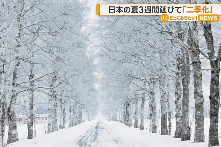 在此基準下,首次超越該溫度的日期定為「夏季開始日」,最後一次超過的日期定為「夏季結束日」。結果顯示,過去42年間夏季開始日提早了12.6天,結束日延後了8.8天,合計延長約21.4天。相比之下冬季長度幾乎沒有變化,因此結果就是秋季與春季縮短,日本的四季正漸漸變成兩季。