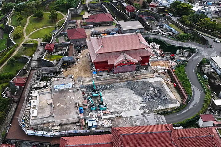 影片中可以看到正殿深紅色的外牆,約6萬片屋瓦,及作為正殿守護神的「龍頭棟飾」與鬼瓦齊齊出現,昔日作為琉球政治、外交與文化中心的威嚴與色彩正逐步回復。現時正殿內部的復原也在推進,包括牆壁及柱的塗漆工序等,目標在2026年秋季完成。大家想再度參觀首里城的話,最少要多等一年了。