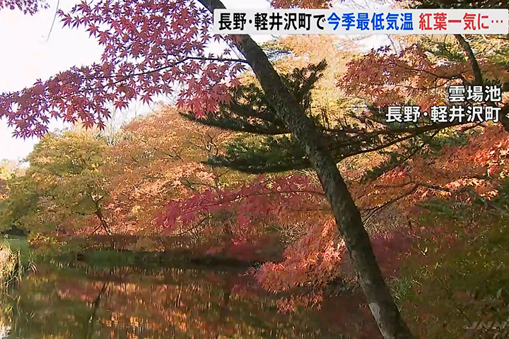 【景點】輕井澤雲場池跌至冰點下紅葉一口氣轉色變漂亮!大家熟悉的長野縣輕井澤町於10月29日氣溫降至本季新低的零下1.1度,當地著名景點「雲場池」因為天氣一直偏暖,紅葉轉色延遲約兩週,但隨著天氣急冷,紅葉快速推進。