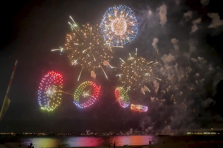此外還表演了為紀念美國建國250周年,預定於明年7月赴當地發放的秋田縣「響屋大曲煙火」,以時間差呈現多色變化的「漸層」等約400發作品,讓在沙灘上的觀眾齊齊拍掌歡呼。來看看秋天的頂尖花火演出吧。