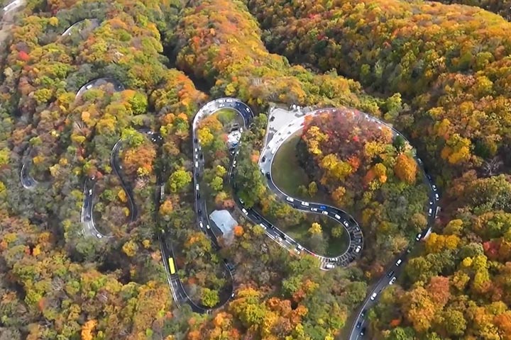 該山道有約440公尺的高低落差,因此可以欣賞到層次各異的色彩之美,今年的紅葉雖然較平均遲了約10天,但色彩是近年最鮮明,因此吸引了大量遊客,影片中可以看到九曲十三彎的道路上全部都是慢行的車,通過整條山路需要數小時!似乎還是安坐家中看這影片比較好呢。