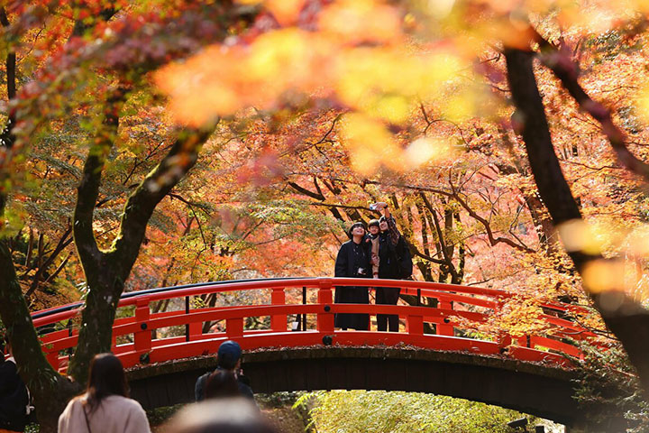 【景點】京都北野天滿宮「紅葉苑」漂亮現場!京都北野天滿宮雖然以梅花聞名,但紅葉也很值得欣賞。宮內西側御土居內的「紅葉苑」,種植了約350棵楓樹,配合小橋流水,及由紅葉黃葉漸層色彩在頭上形成「紅葉隧道」,帶來漂亮的風景。