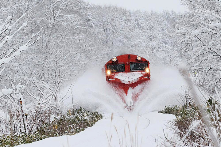 【交通】北海道紅色鐵道除雪車出動雪花四濺充滿迫力!北海道最北的JR宗谷線配備「犁式除雪車」(ラッセル車),車頭裝有俗稱「雪鏟」的犁板式除雪裝置,能把路軌上的積雪破開,保障其他列車行走時的安全。