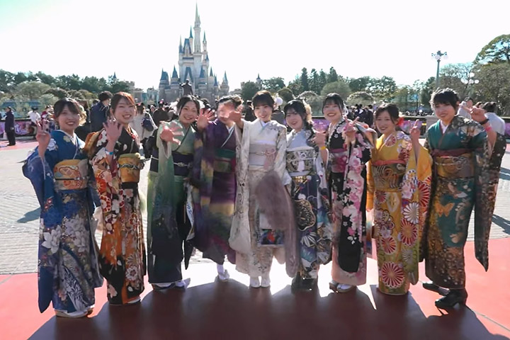 之後當然要去灰姑娘城堡前拍照,穿上華麗振袖的女生齊齊開心合照,慶祝人生中的重要日子,同時在鏡頭前說出對新一年的期許。今年東京迪士尼樂園的弁人禮已是第25屆,當地浦安市表示,雖然因民法修正把成人年齡改為18歲,但考慮到升學考試與就職活動時期重疊,活動對象年齡仍維持20歲,也因此活動沒有使用成人之詞而是「二十歲的集會」。