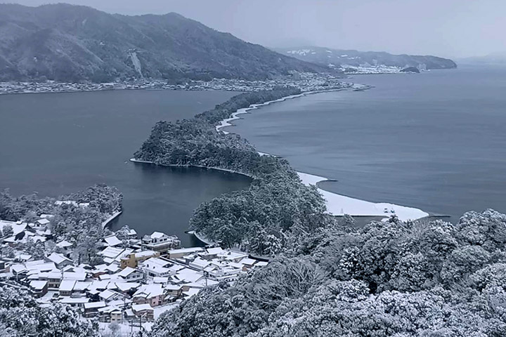 【景點】日本三景京都「天橋立」雪化妝美如山水畫!1月11日開始日本冬季型氣壓配置增強,京都府北部出現大雪,因此日本三景之一的「天橋立」出現雪化妝,原本綠色的風景變成白色,就像一幅山水畫,進行指定動作「跨股觀龍」時可以欣賞到黑白的升龍圖。這個風景能吸引你前往嗎?