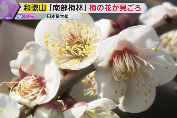 【景點】日本最大型「南部梅林」迎接滿開期!和歌山縣南部町「南部梅林」被譽為「一目百萬、香飄十里」,是日本規模最大的梅林,現時遍布整座山丘約 8萬株梅花已迎來最佳觀賞期。今年受暖冬影響,開花較往年提早約一週。