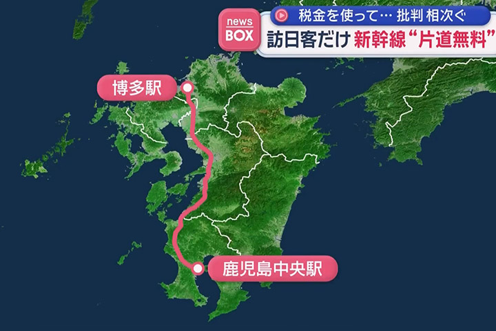 【交通】鹿兒島免費新幹線車票送海外遊客當地市民喊不公平!鹿兒島縣最近打出新的吸引遊客方案,對外國觀光客提供從博多站到鹿兒島中央站的單程九州新幹線車票的全額補助,條件是須要在鹿兒島縣住宿最少一晚,相關的費用將由稅金負擔,預計要使用2億7800萬円。