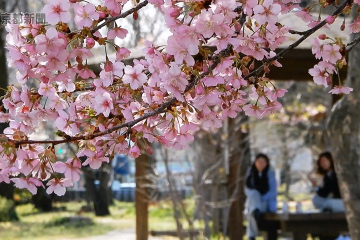 【景點】京都河津櫻滿開漂亮現場!要看河津櫻不一定要去伊豆河津町,東京以至京都也能看到。這裡是京都紫明通,道路的中間有7個以「紫明せせらぎ」命名的公園,那裡種植的河津櫻最近已來到滿開時期,有著鮮艷的粉紅色,可以看到有人坐在涼亭中喝酒聊天賞櫻,重點是人不多,感覺舒適自在。