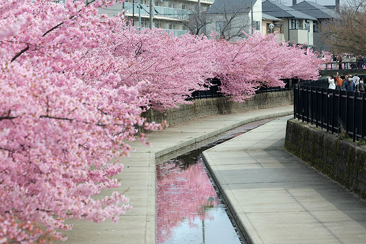 現場所見,河津櫻明顯比常見的染井吉野櫻顏色鮮艷,無論欣賞還是拍照都相當吸引,特別是水路的轉彎處,可以欣賞到眼前全部都是粉紅色的美景。預計本週仍然是當地賞櫻的最佳時段,身處京都的朋友,把握機會前往吧。