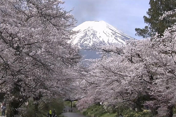 4月12日天氣晴朗,大批國內外遊客到訪,紛紛用相機和手機拍下心儀的照片,享受滿開的櫻花。遊客接受訪問時都感到滿足,內容包括:「能同時看到富士山和櫻花,超級漂亮!」「櫻花季來還是第一次,一直很期待。真的太棒了,簡直最高!富士山、櫻花加上美麗的河流,無可挑剔,已經完全滿足。」