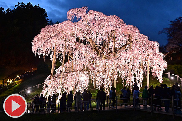 今年由於三月起持續溫暖,當地比去年提早四天開花,到4月12日的週末迎來滿開。花期預計持續到下週末,夜間也有櫻花點燈活動。這裡有「花、山、水」三位一體的構圖,雖然不及附近「新倉山淺間公園」的五重塔那麼震撼,但也是絕景之一,而且人潮明顯少得多,值得你一去!