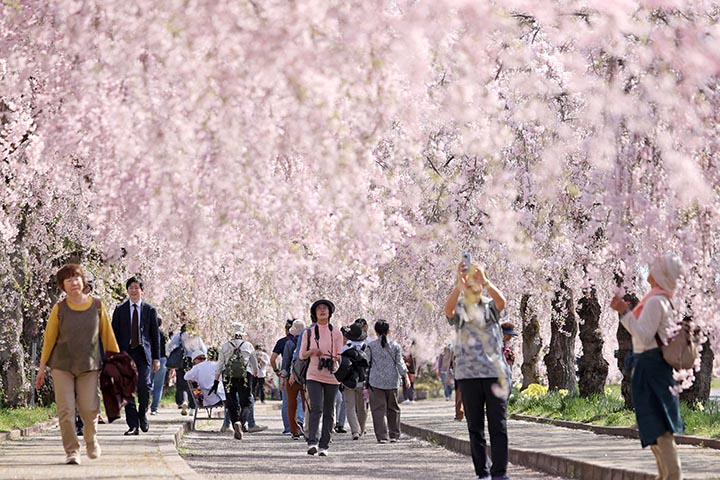 【景點】福島喜多方「日中線枝垂櫻並木」3公里粉色櫻花隧道!在日本有不少地方都有由櫻花樹形成的「櫻花隧道」,但這裡我覺得特別精彩,福島縣喜多方市內,沿廢線的舊國鐵日中線遺址步道,約3公里的路段上約1000棵櫻花樹連綿不絕,到訪遊客盡情享受枝垂櫻如拱頂般覆蓋步道所形成的絕景。