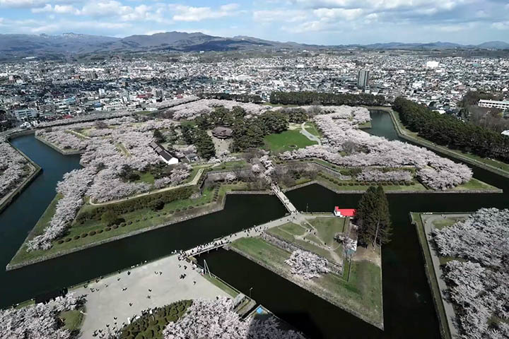 今年五稜郭的櫻花於4月18日宣布開花,是自1953年有紀錄以來第二早,反映今春北海道氣溫偏高的趨勢。齊來欣賞這全日本唯一的五星形櫻花絕景吧。