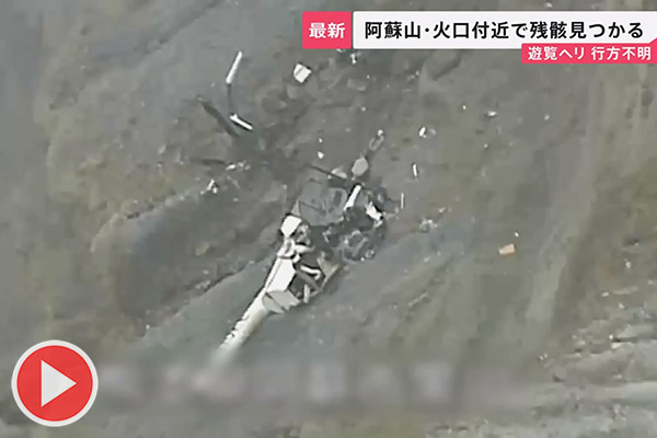 【社會】熊本阿蘇觀光直升機墜毀台灣夫婦乘客仍然失聯!1月20日上午一架從熊本阿蘇市「阿蘇卡德利動物樂園」起飛的觀光直升機突然失聯,隨後在阿蘇中岳火山口內發現機體殘骸……