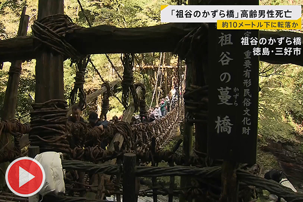 【社會】德島著名景點「祖谷蔓橋」發生墜落死亡意外!德島縣三好市的「祖谷蔓橋」是日本三奇橋之一,相傳是12世紀源平合戰後,平氏被源氏擊敗而逃往祖谷溪,使用山中藤蔓來建橋……