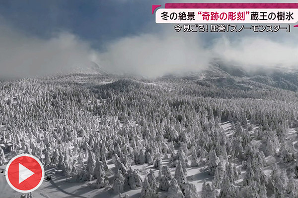 【景點】藏王樹冰最壯麗時期高空欣賞!山形縣和宮城縣交界的藏王地區山坡上,現在已出現大量「樹冰」,樹冰只在氣溫低於零下10℃、風速達每秒10公尺以上等條件齊備時才會出現……