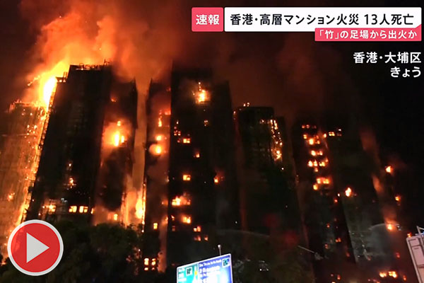 【社會】香港大埔5級大火13死日本各大電視台關注報導。香港大埔宏福苑11月26日發生火警,延燒7棟大廈,至今已經造成最少13死23傷,是香港17年來首宗達最高5級的大火……