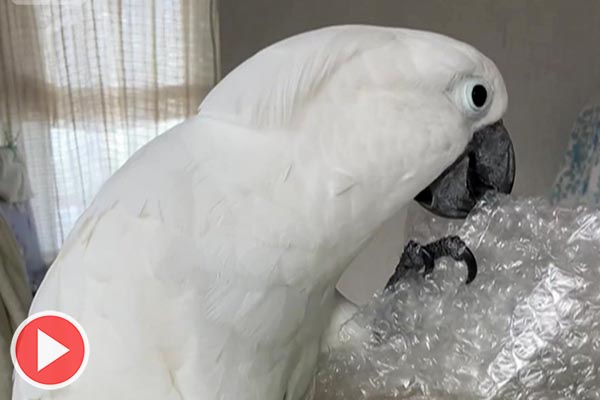 【趣聞】鸚鵡迷上氣泡布和人類一樣不斷弄破為樂原因為何?這隻大白鳳頭鸚鵡名為「ジュライ」,牠拿著氣泡布,用口咬破其中一個氣泡,發出清脆的「啵」聲後,自己也跟著發出類似……