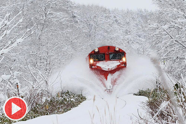 【交通】北海道紅色鐵道除雪車出動雪花四濺充滿迫力!北海道最北的JR宗谷線配備「犁式除雪車」(ラッセル車),車頭裝有俗稱「雪鏟」的犁板式除雪裝置,能把路軌上的積雪破開……